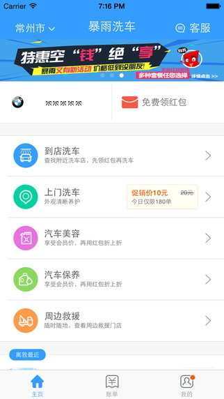功能:全城1元洗車——用戶在全城范圍內的加盟店享受一元洗車活動;會員價洗車——洗車需辦卡才享會員價?不!在暴雨洗車,無需辦卡,同樣享受會員價;