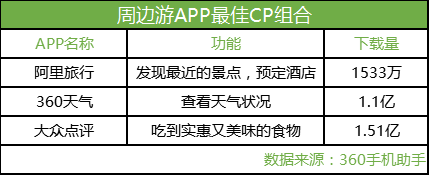 圖:360手機助手大數據推薦周邊游APP最佳組合